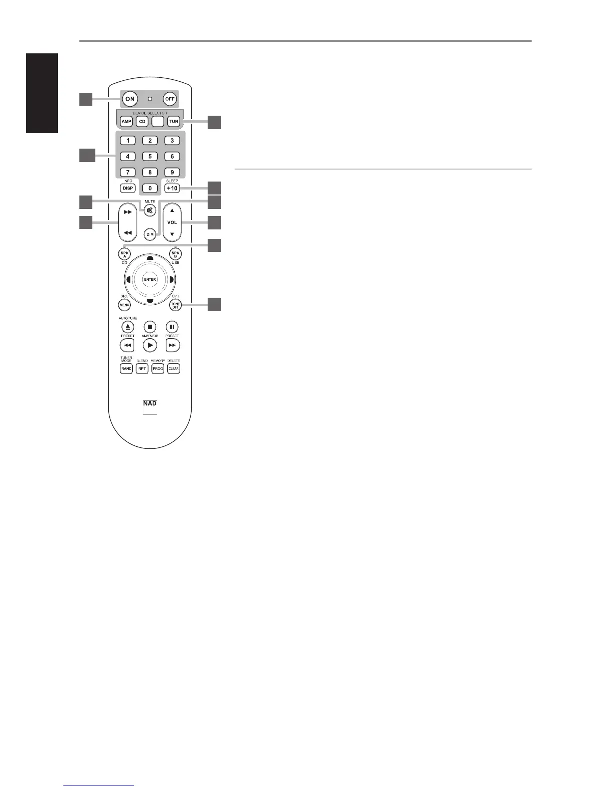 5 SLEEP: Switch o specic NAD Receiver or Tuner models after a preset number of minutes. This