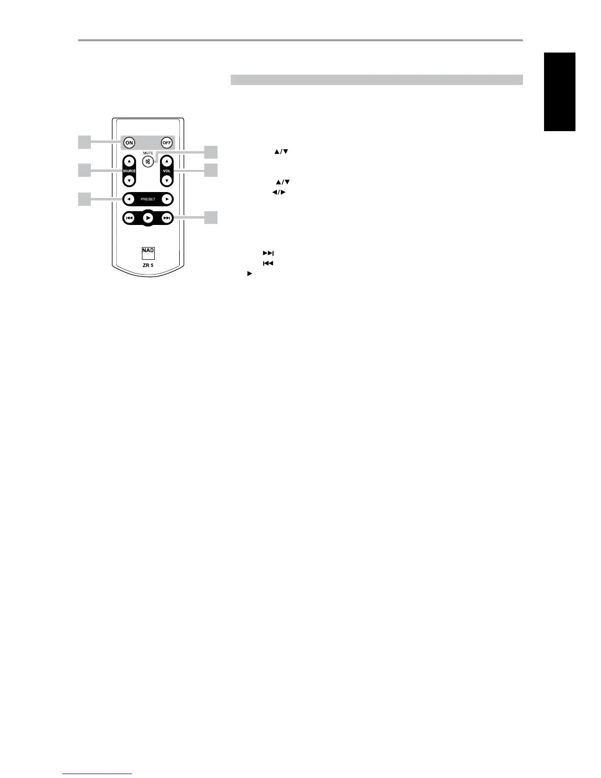 5 PRESET [ ] : Step up or down between stored radio presets. This control button is possible if