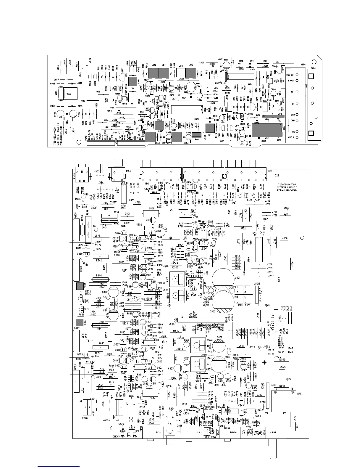 NAD C 730 - ADJUSTMENT POINTS DIAGRAM; TUNER; MAIN BOARD