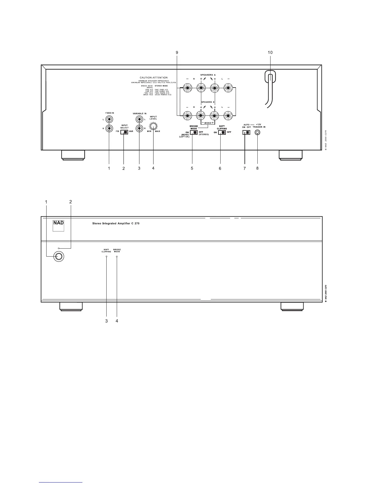NAD C270 - Rear Panel Connections; Front Panel Controls