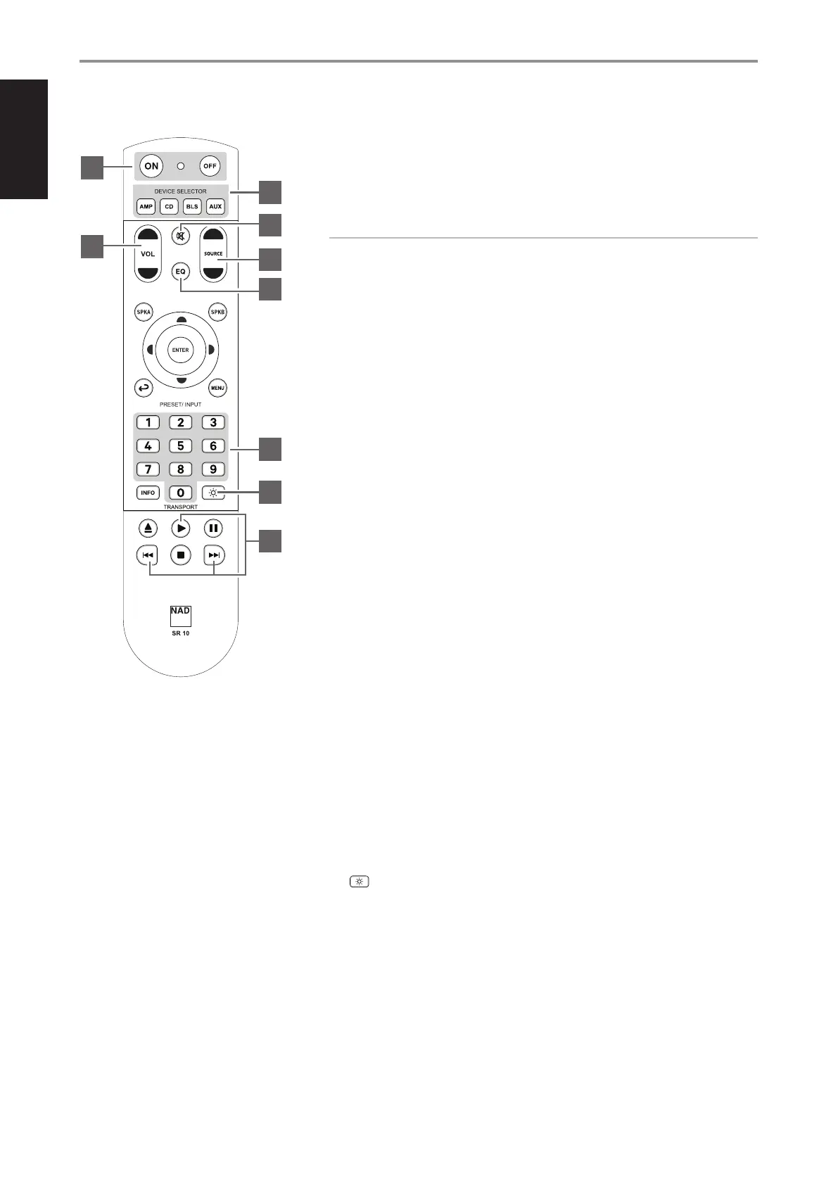 7 NUMERIC BUTTONS: The numeric buttons allow for direct selection of Source input. Press