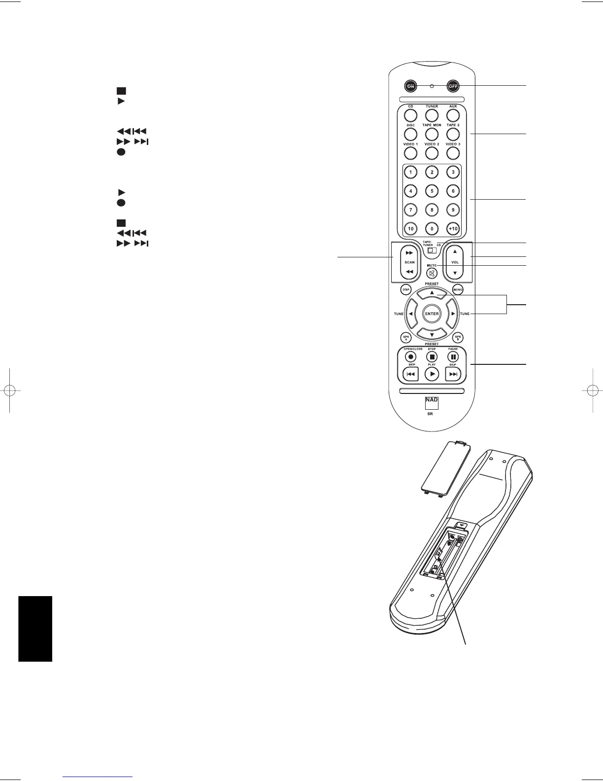 funktionen för transportknapparna mellan TAPE/TUNER och CD .