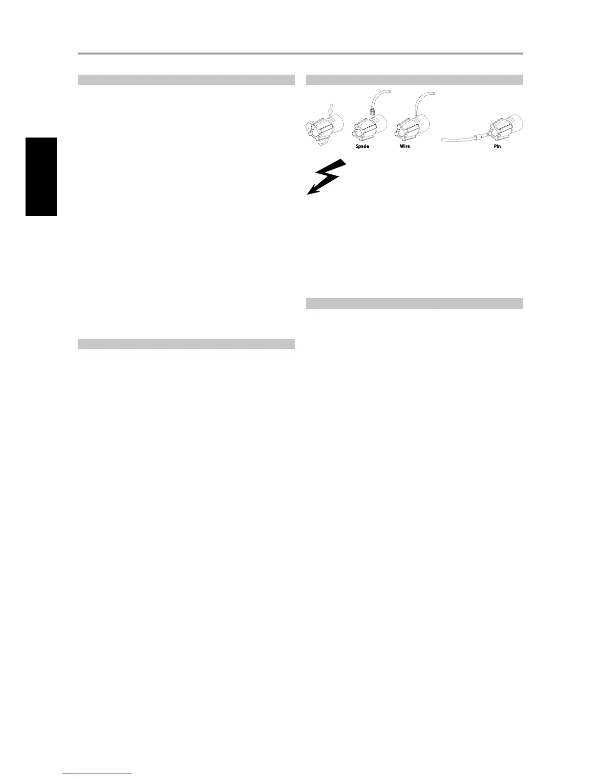broche et qu’il n’y ait aucun brin libre sur les ls des haut-parleurs.