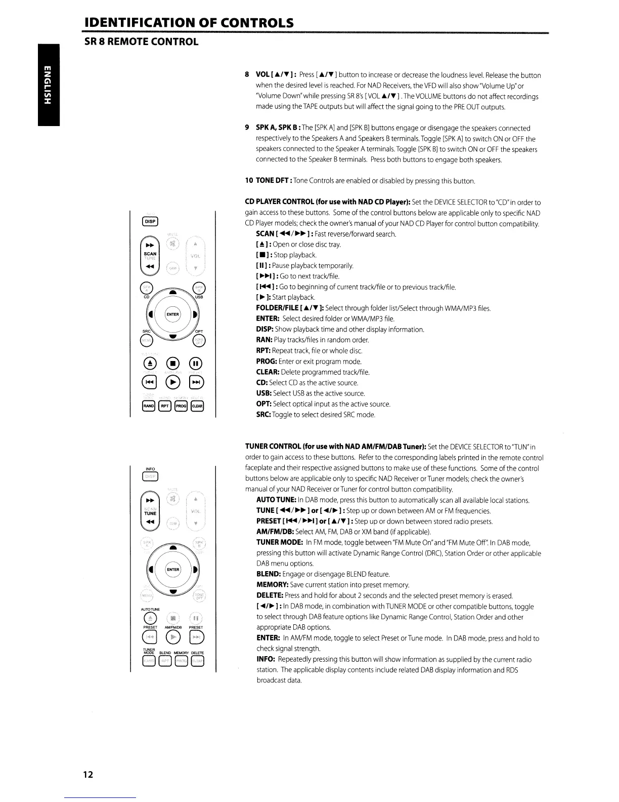 NAD C375BEE - Volume and Speaker Selection; Tone Controls and CD Player Functions; Tuner Control Functions