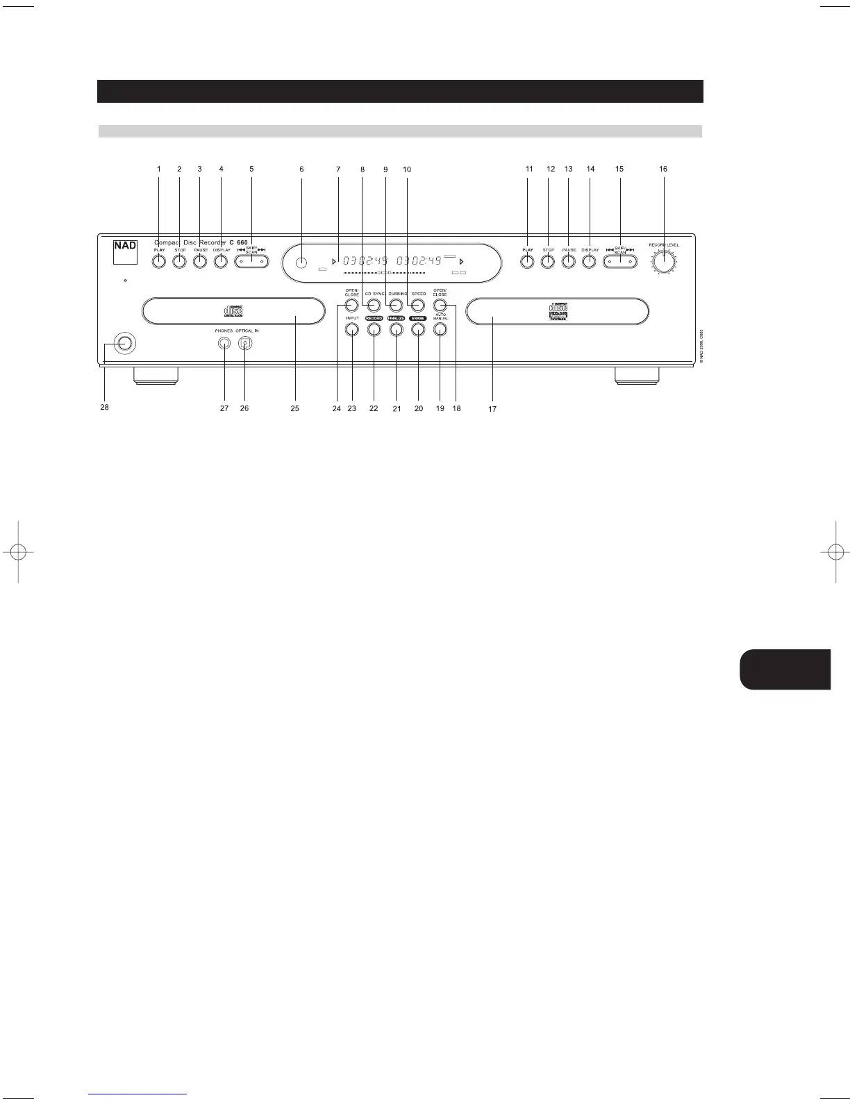 2 STOP (play deck) Press to stop the CD in the play deck.