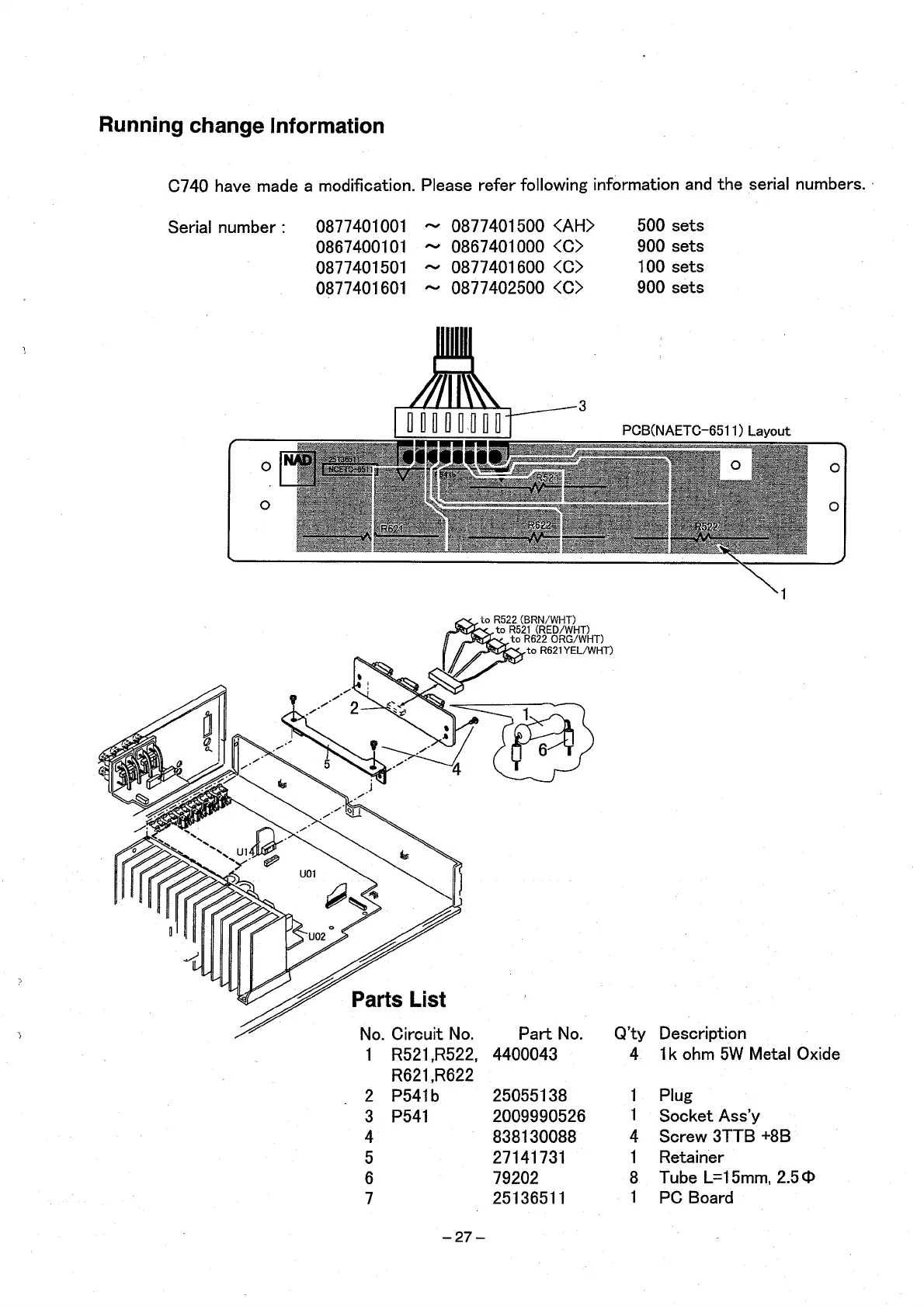 NAD C740 - Running Change Information