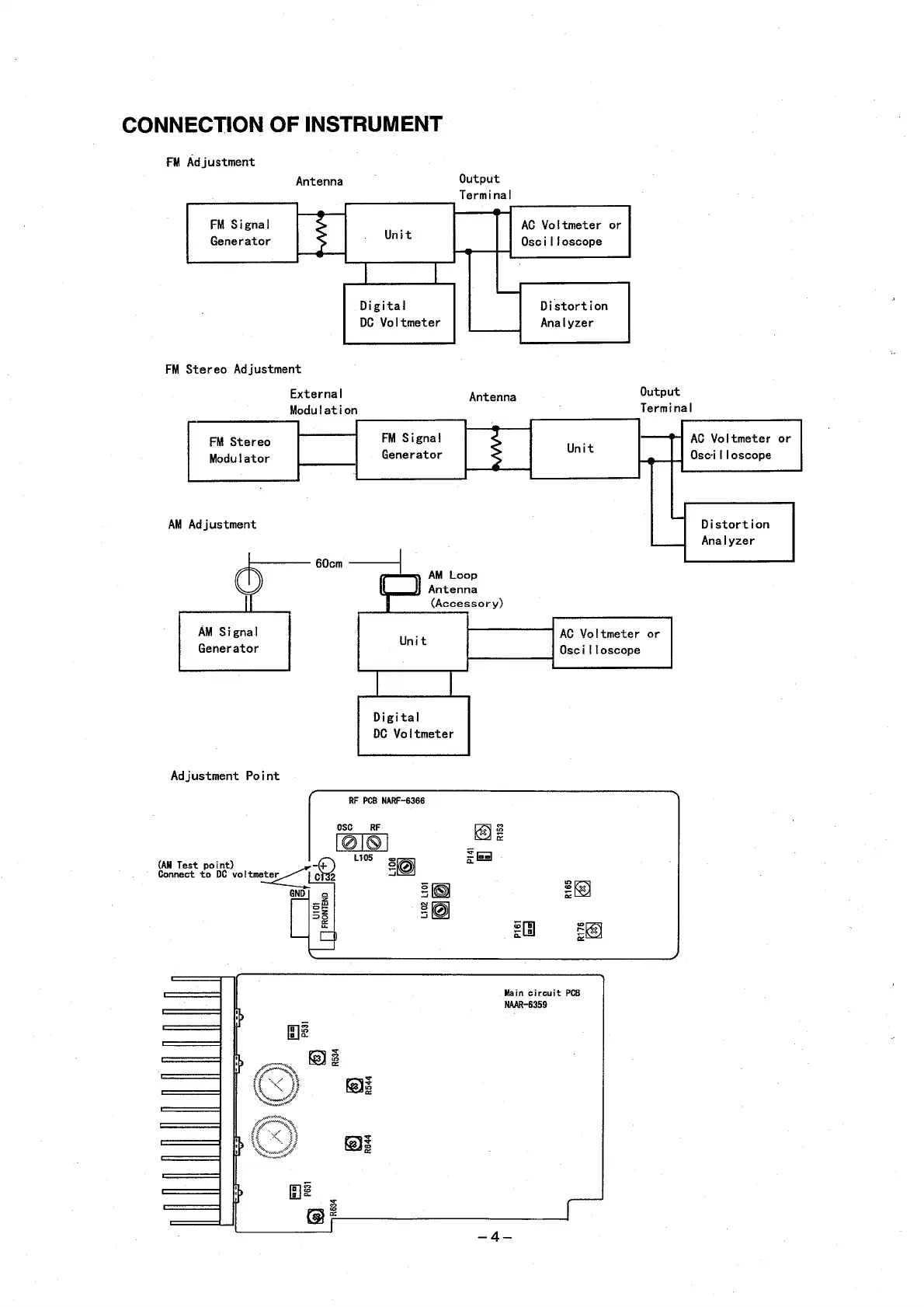 NAD C740 - Instrument Connection for Alignment; Alignment Setup Diagrams