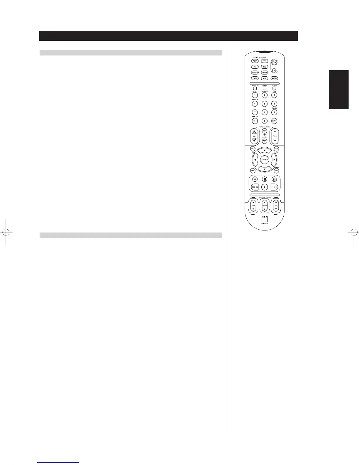 • Contains pre-programmed library of NAD remote codes for the L70.