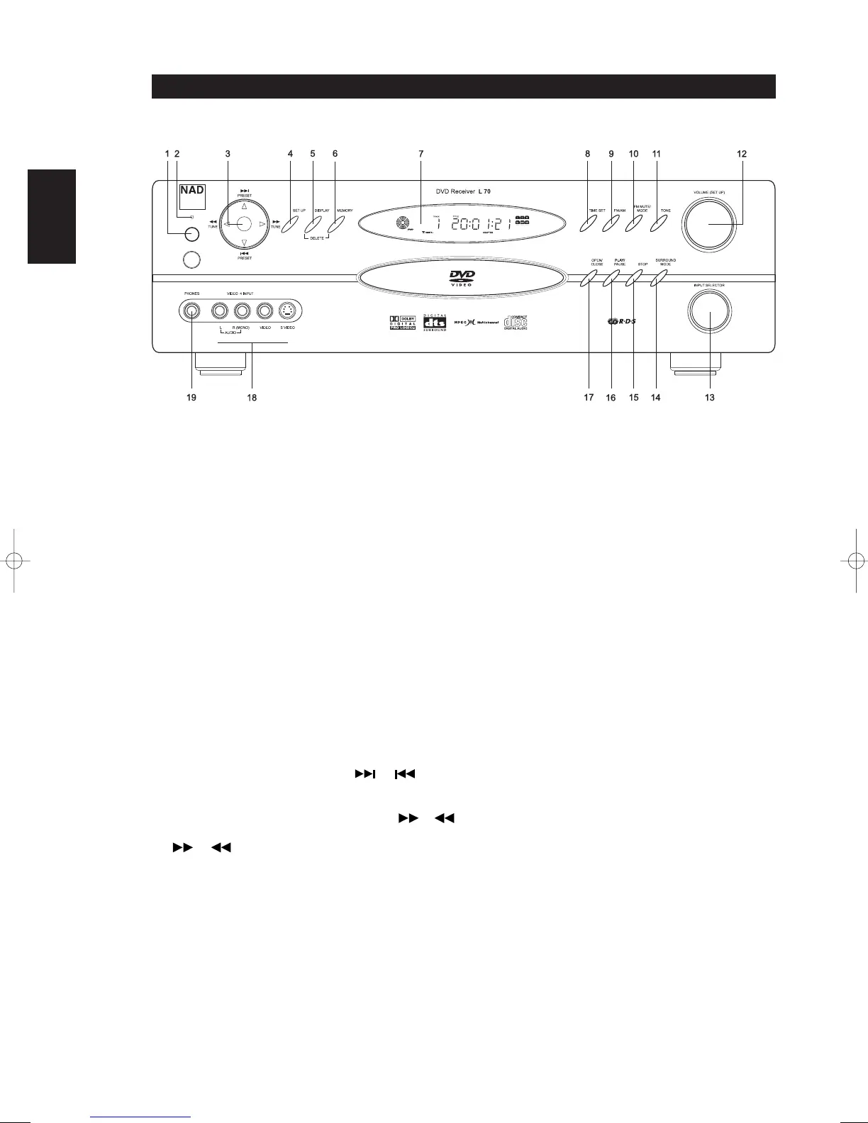 6MEMORY: Use to store tuned stations to the L70’s 60 preset-