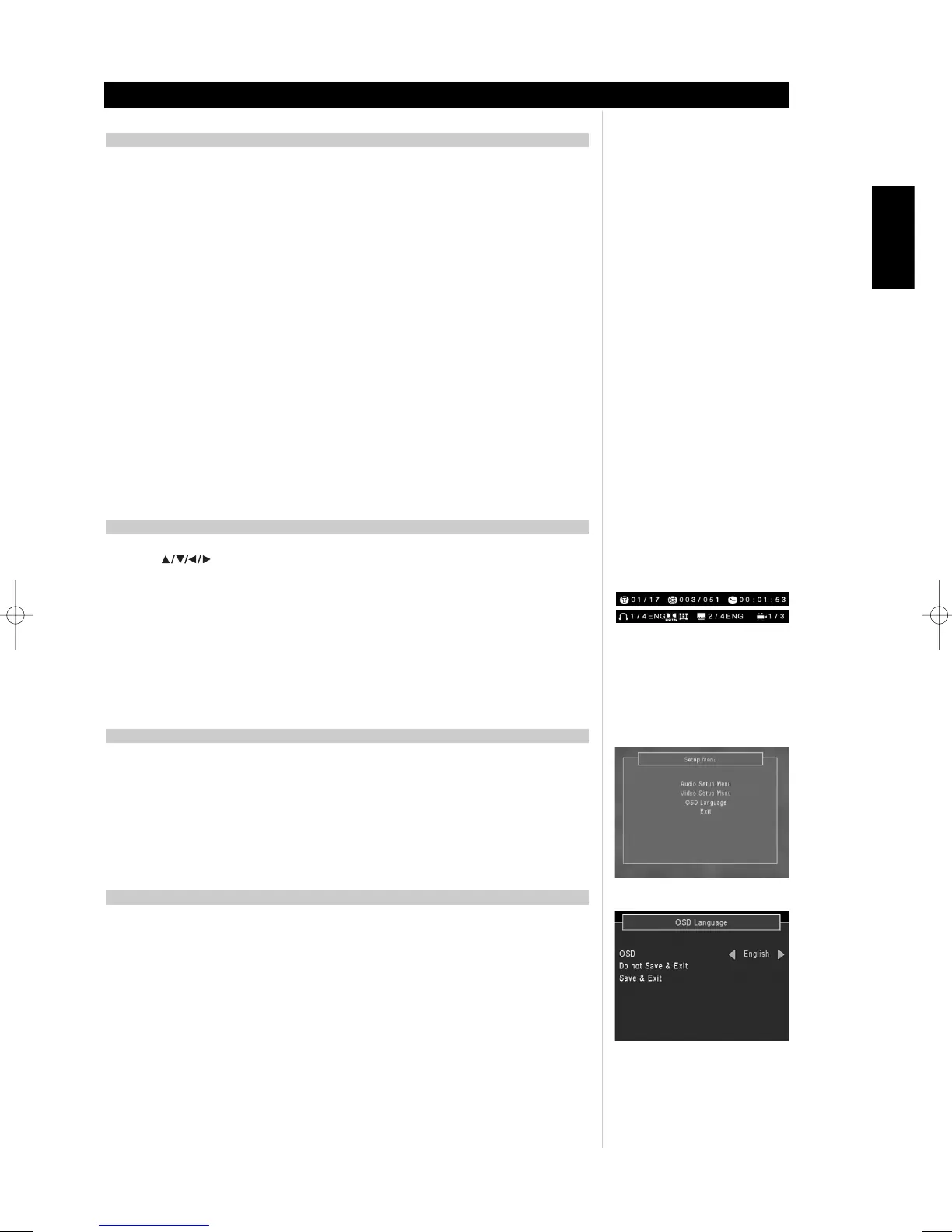 via OSD, the title headings and menus of the DVD and MP3 CD media when available.