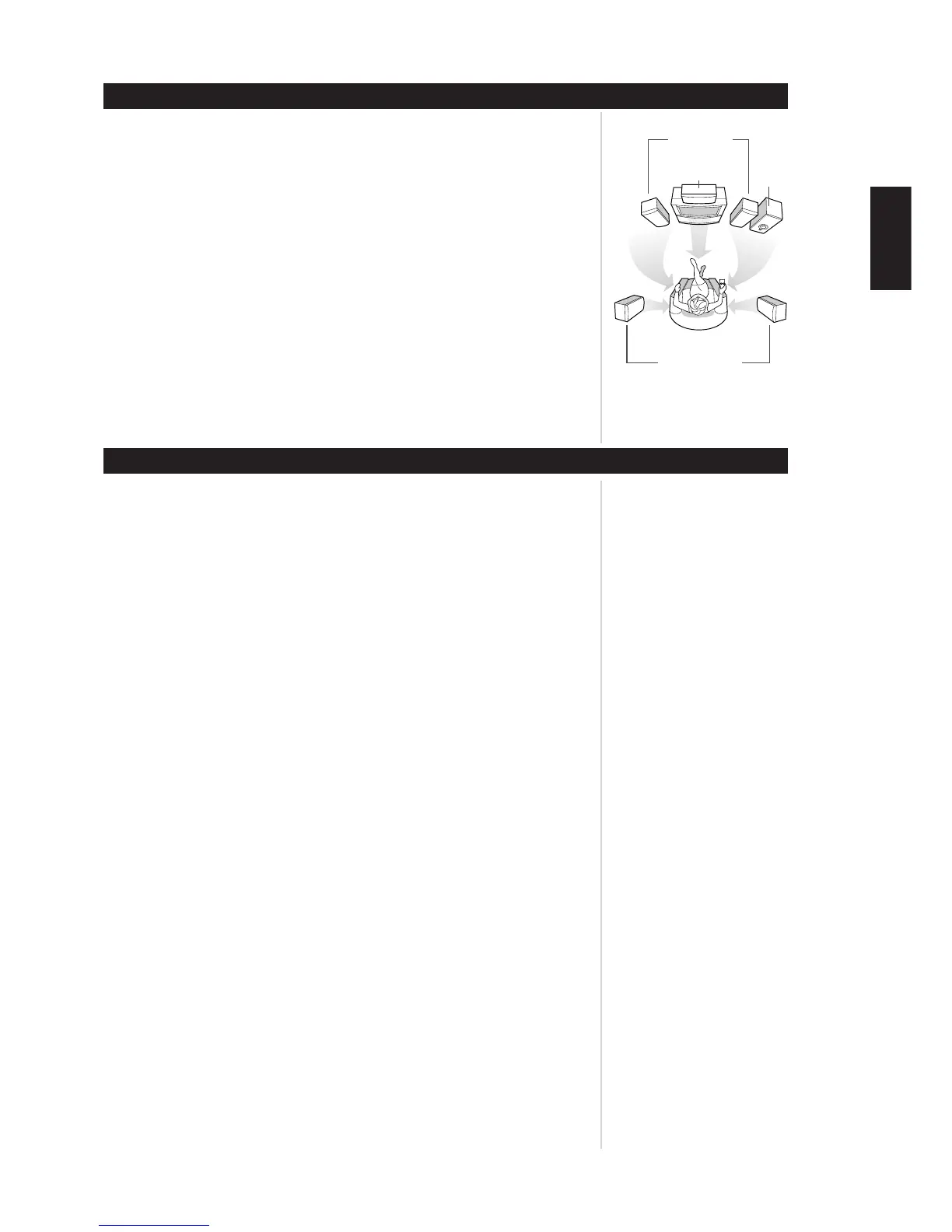 • Center speaker Place front and center. This speaker stabilizes the sound image and helps recreate