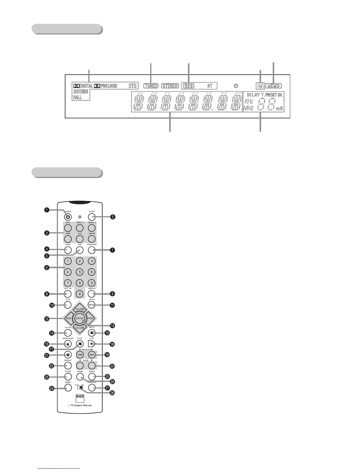 9. DIGITAL INPUT/RDS button (L75), DVD DISPLAY button (L55)