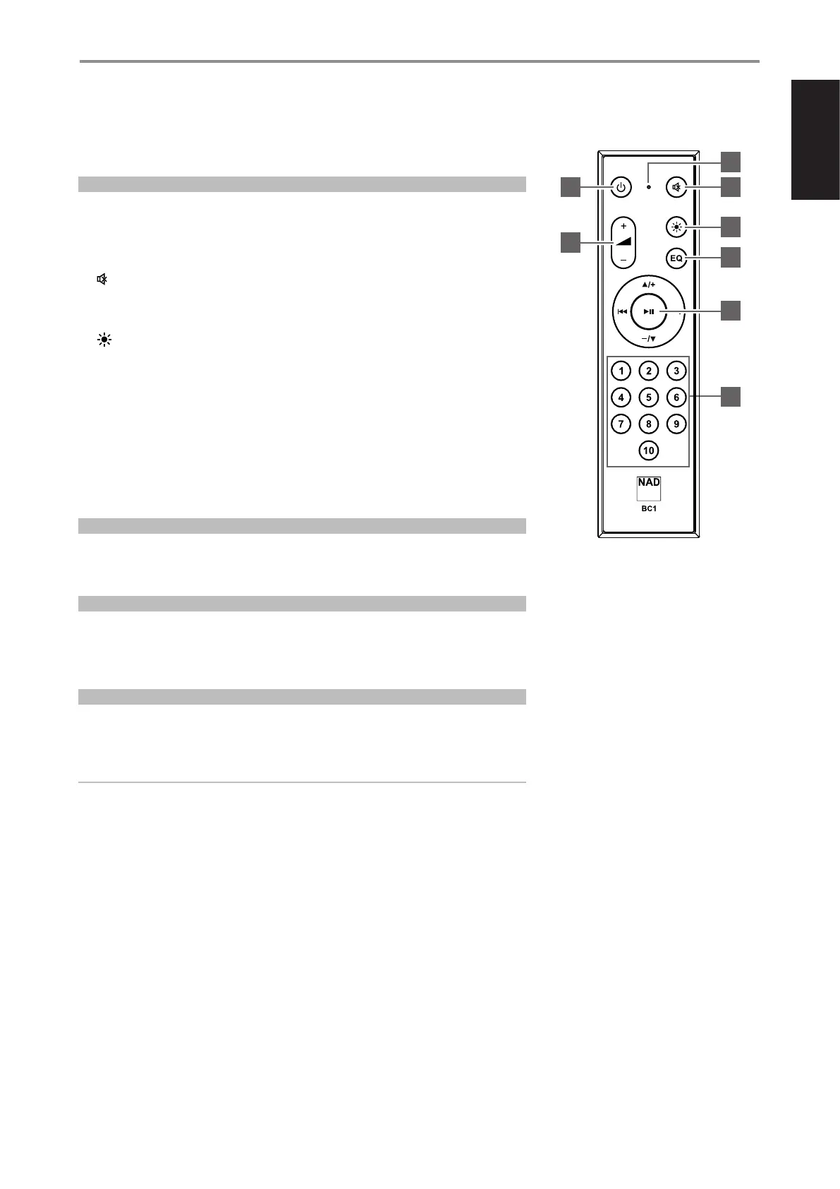 5 : Vary brightness level of the front panel display and Status Indicator (NAD logo)