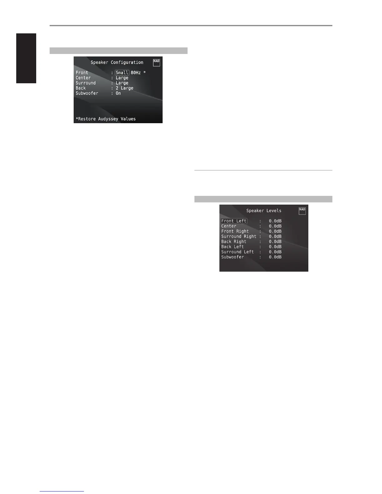 The congurations set forth at ‘Speaker Setup’ are carried over whenever