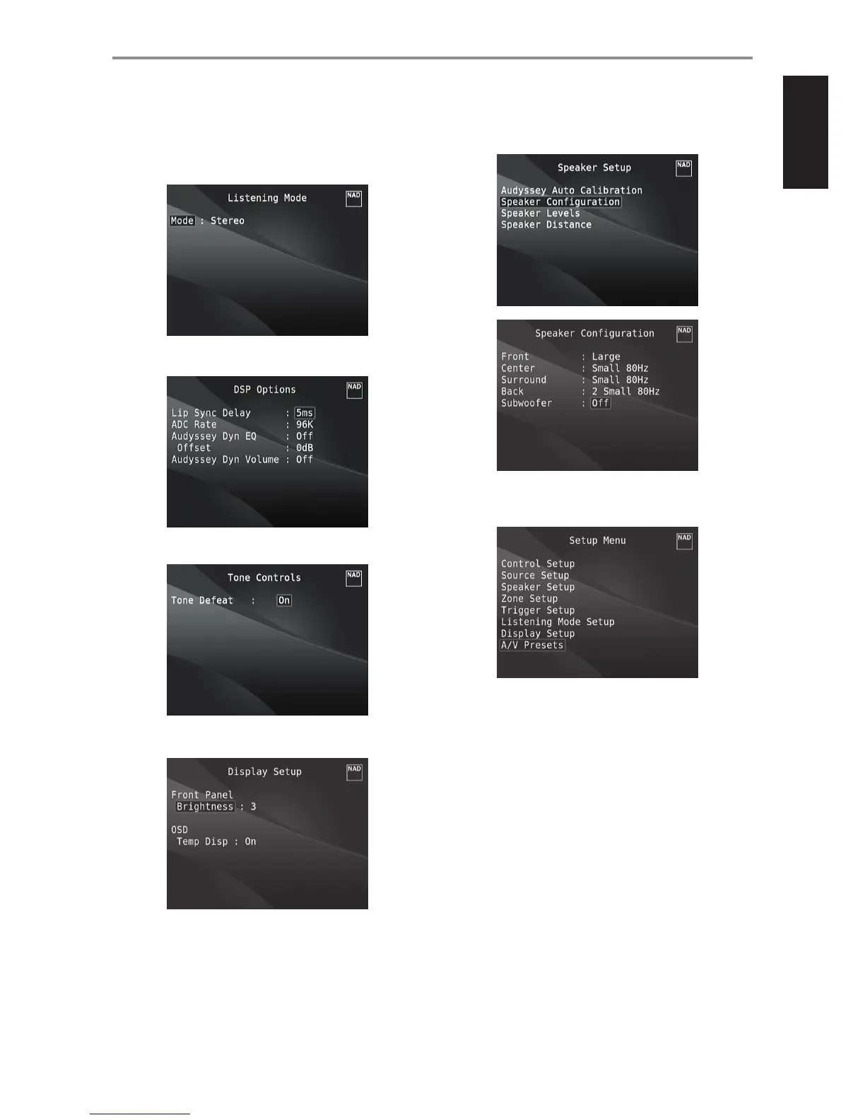 page. Use [E] to access “A/V Presets” menu.