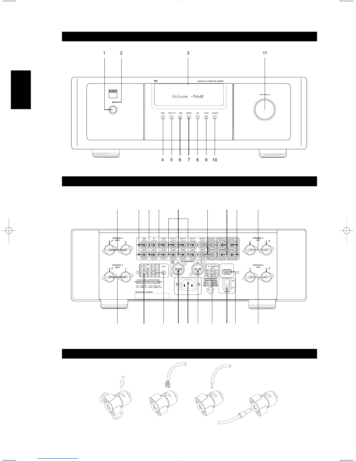 NAD M3 - Identification of Controls; Front Panel Controls; Rear Panel Connections and Controls
