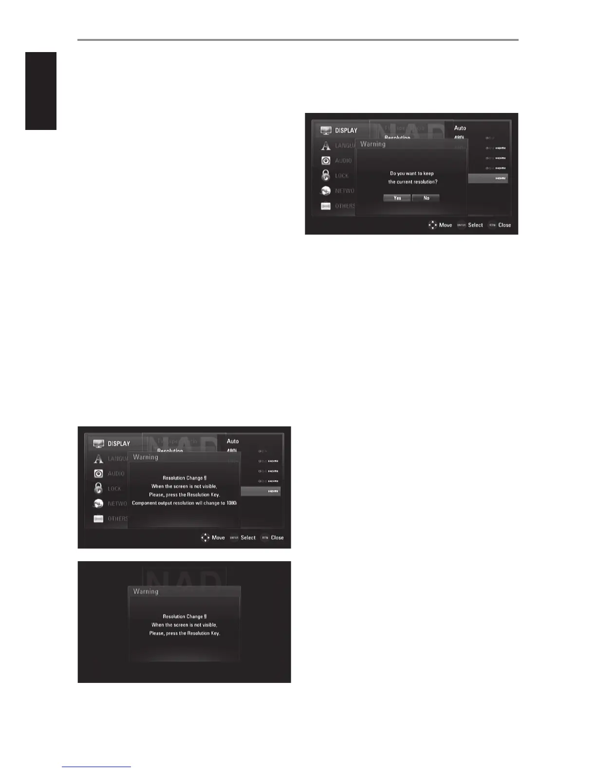 After resolution change, if you cannot see the screen, please wait for about