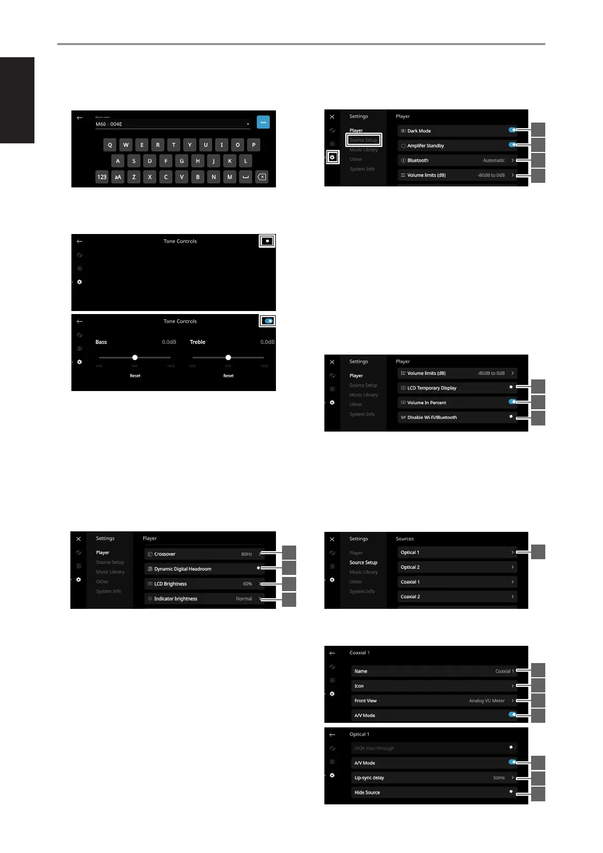Tone Control levels, Bass and Treble, can be turned ON/OFF or