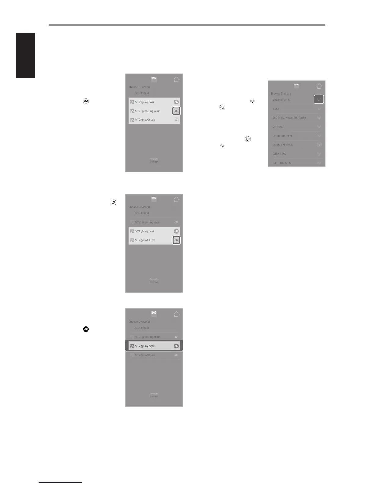 From any browsing station menu, one can pick a radio station from the list