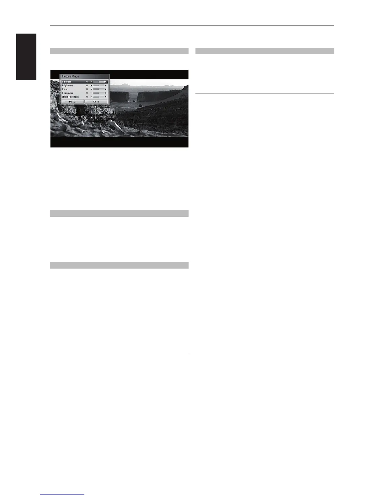 5 Select “Default” to restore Picture Mode default settings. Select “Close”