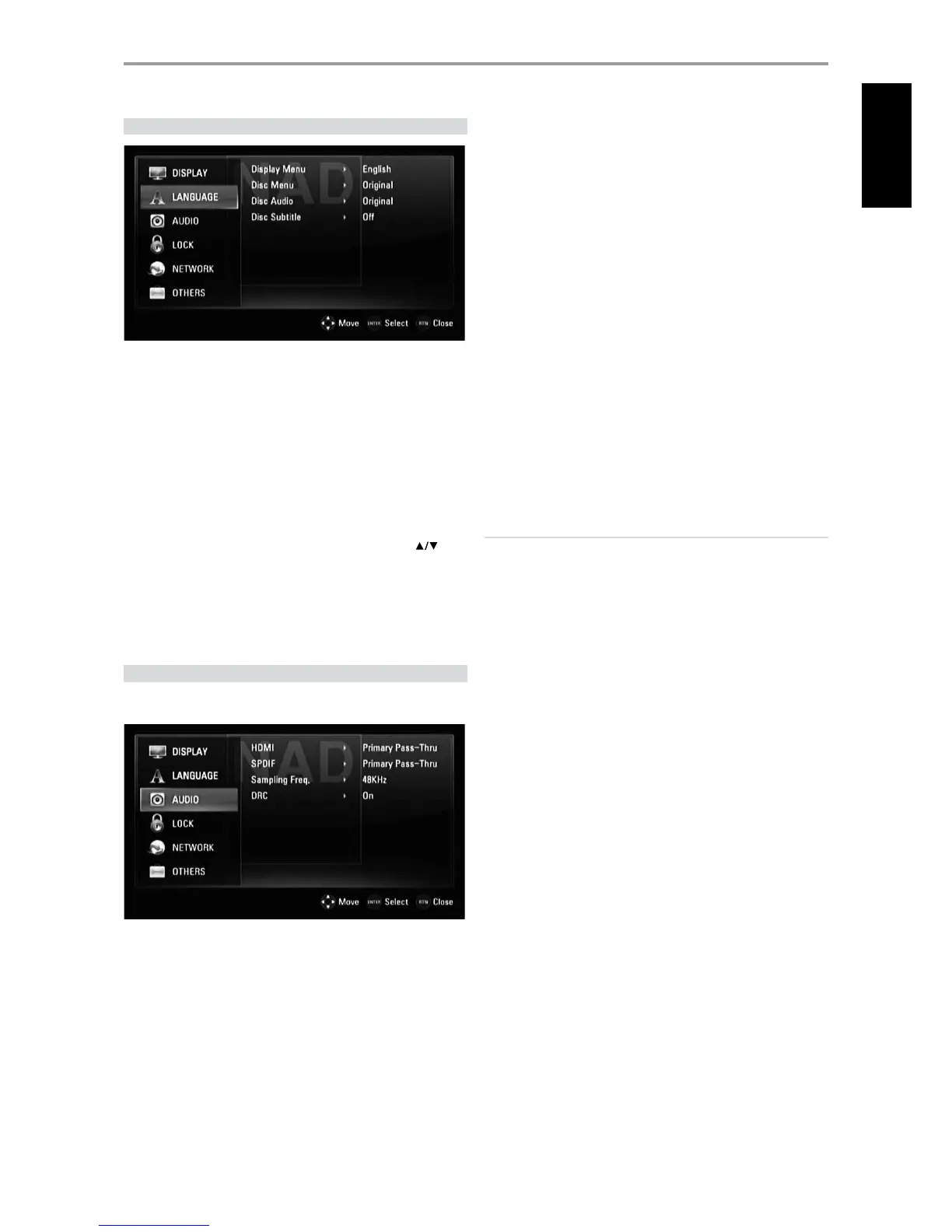 Each BD/DVD disc has a variety of audio output options. Set the T 587’s