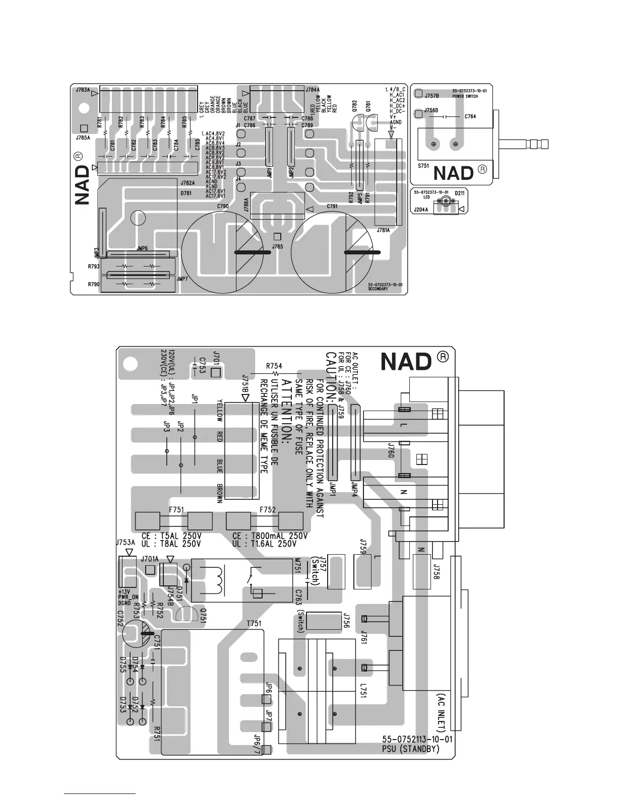 NAD T 752 - SECONDARY;POWER SWITCH;LED BOARD; POWER SUPPLY BOARD (STANDBY)