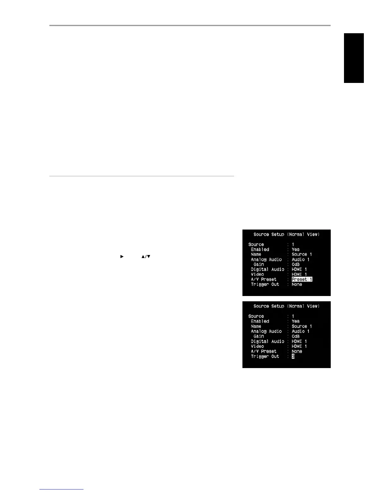 A particular Source can be assigned a stored Preset. The parameters set up in the selected Preset