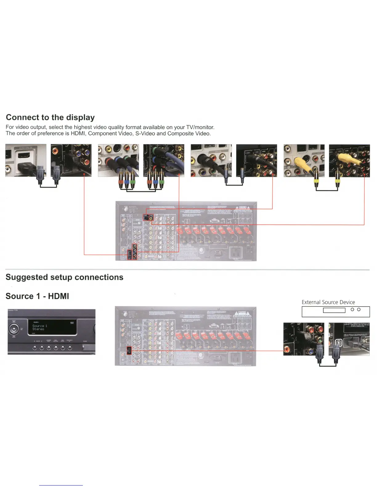 NAD T 765 - Connecting to the Display; Suggested Setup Connections: Source 1 - HDMI