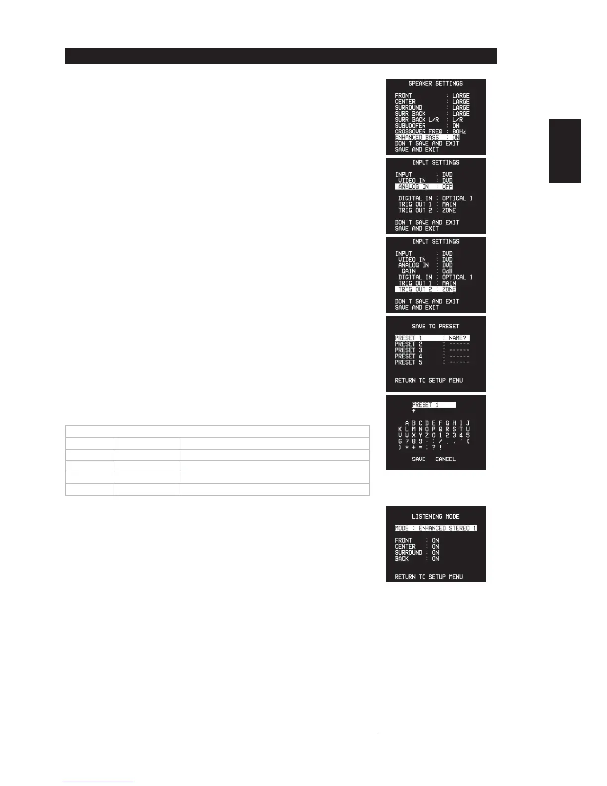 SETTING (page 16). These presets add convenient quick set-up of several common speaker configurations.
