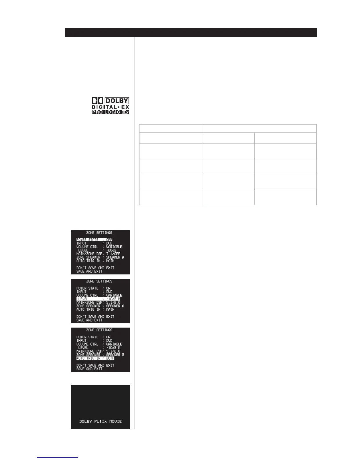 kanaalsuitgang. Bij beide Pro Logic IIx processen kunt u de functies Movie of Music selecteren, zodat u uw