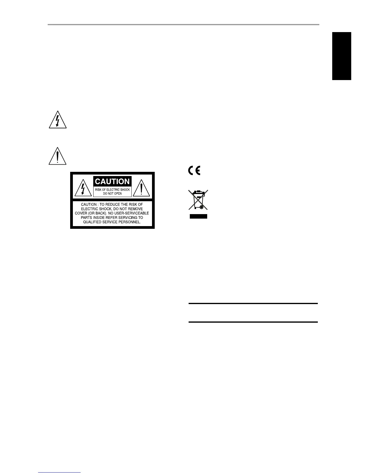 WARNING: TO REDUCE THE RISK OF FIRE OR ELECTRIC SHOCK,