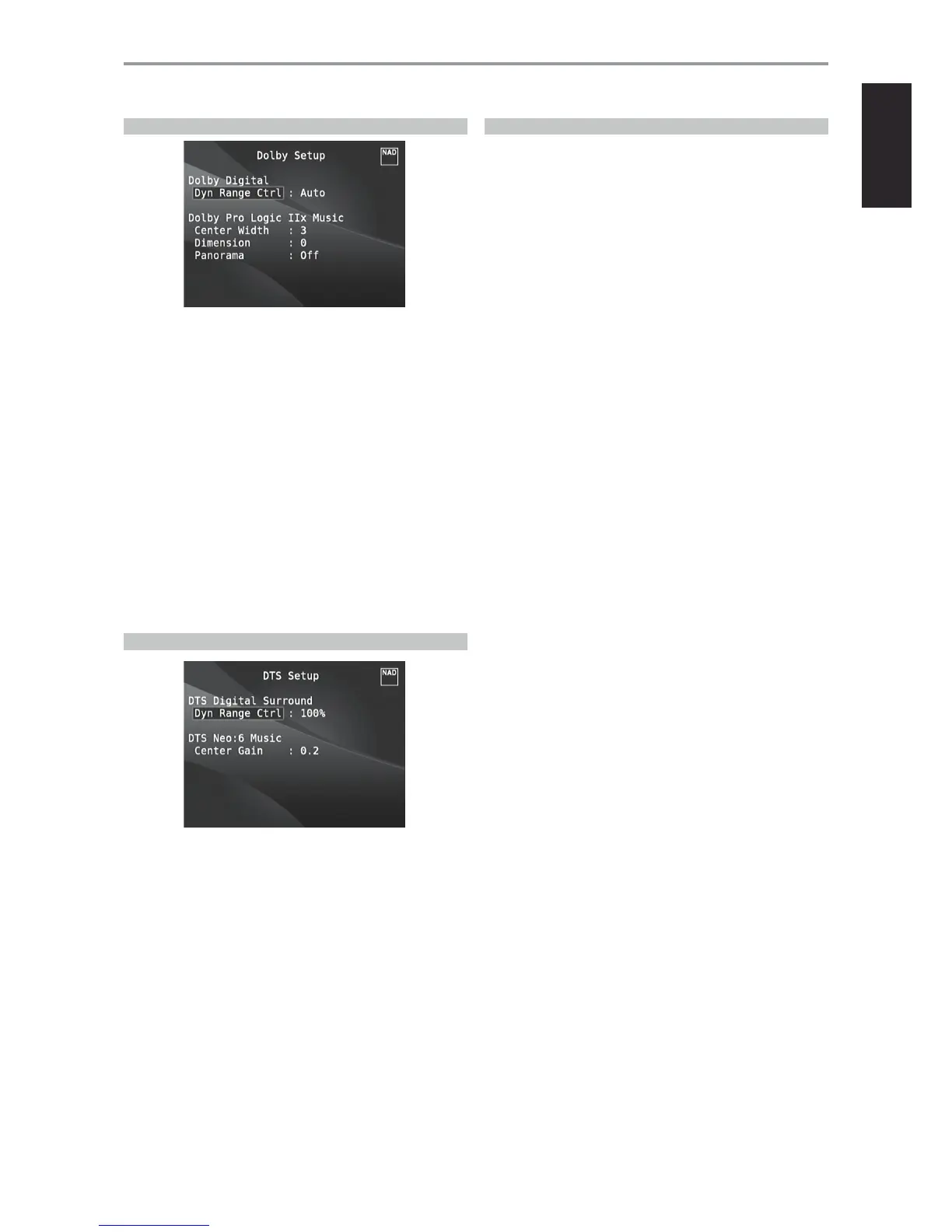Under this menu, the Dolby Digital’s Dynamic Range Control can be