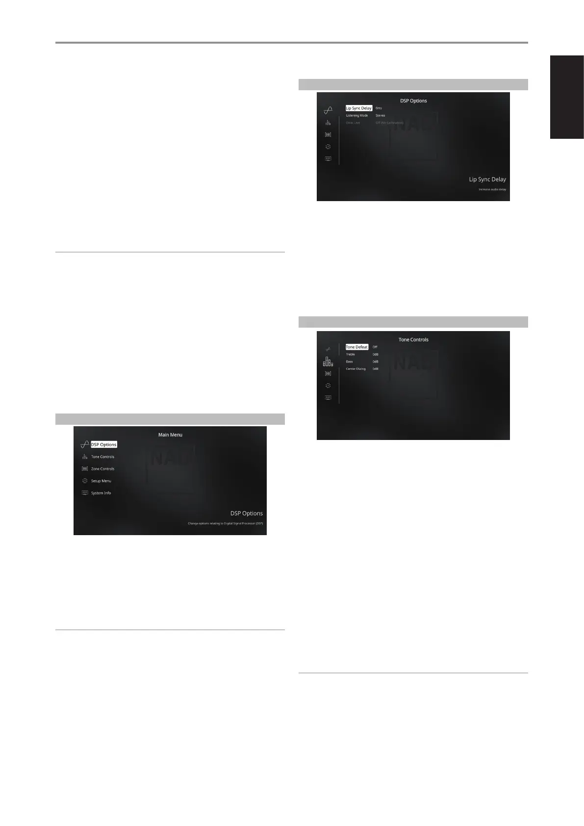 The Main Menu contains menu options for “DSP Options”, “Tone Controls”,