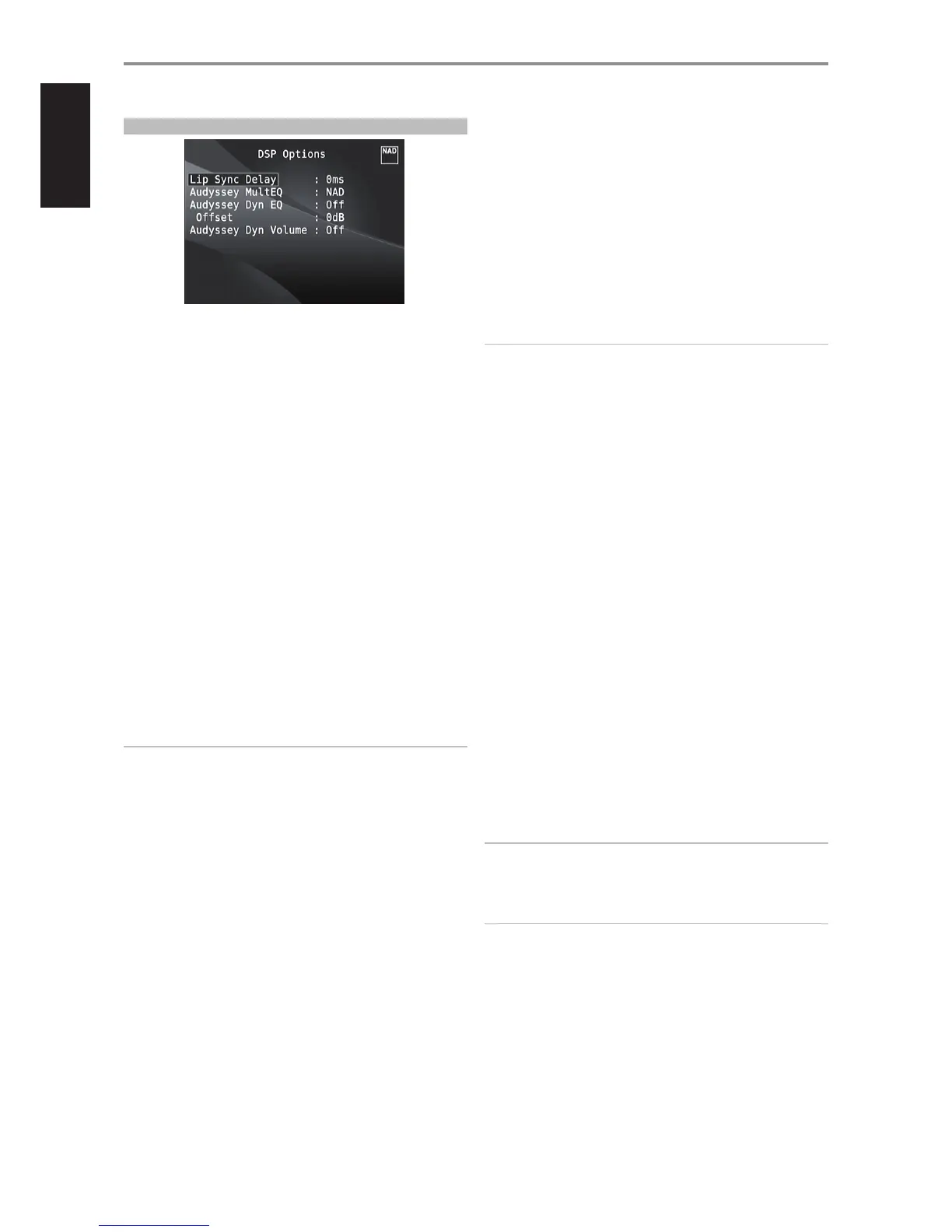 AudysseyDynamicVolumeandAudysseyDynamicEQtobeeective.Ifthe
