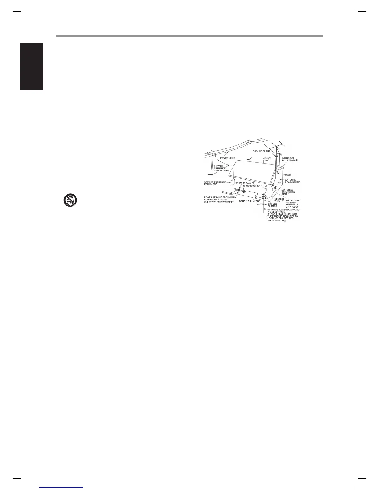 connected to the product, be sure the antenna or cable system is grounded so