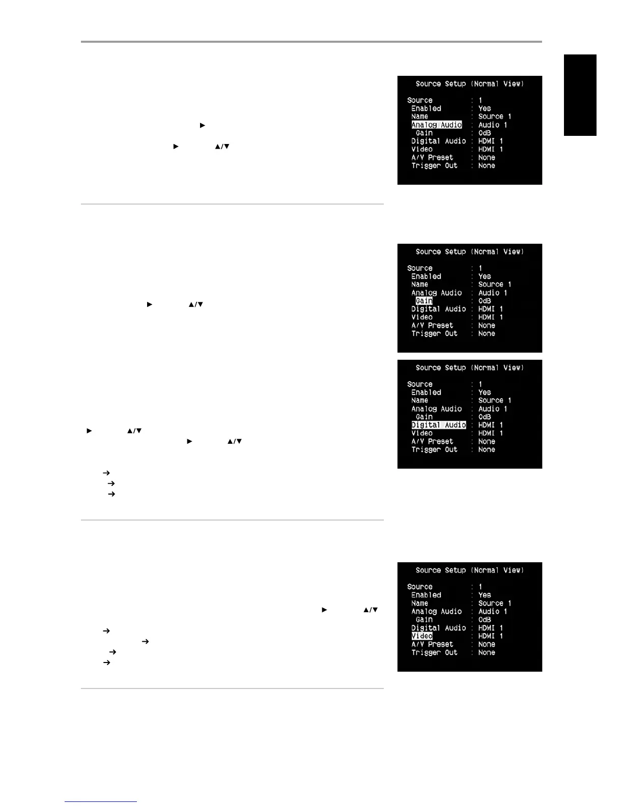 audio or video for the associated Source. For example, if the selected Video setting for a particular Source is HDMI 1