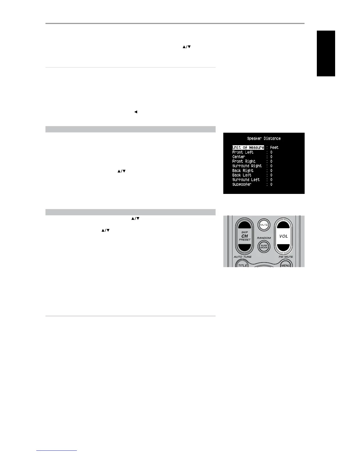 While at “Speaker Distance” menu, use the [ ] keys to individually set Front Left, Center, Front Right,