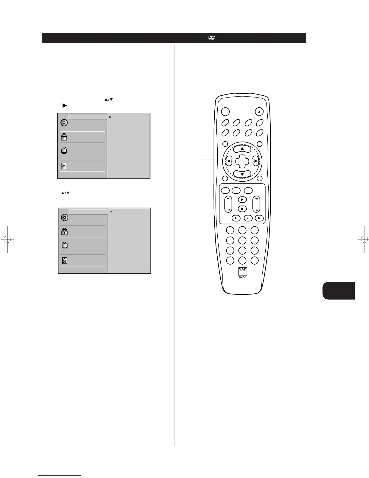 1 At the setup screen, press to select “Disc Audio” and