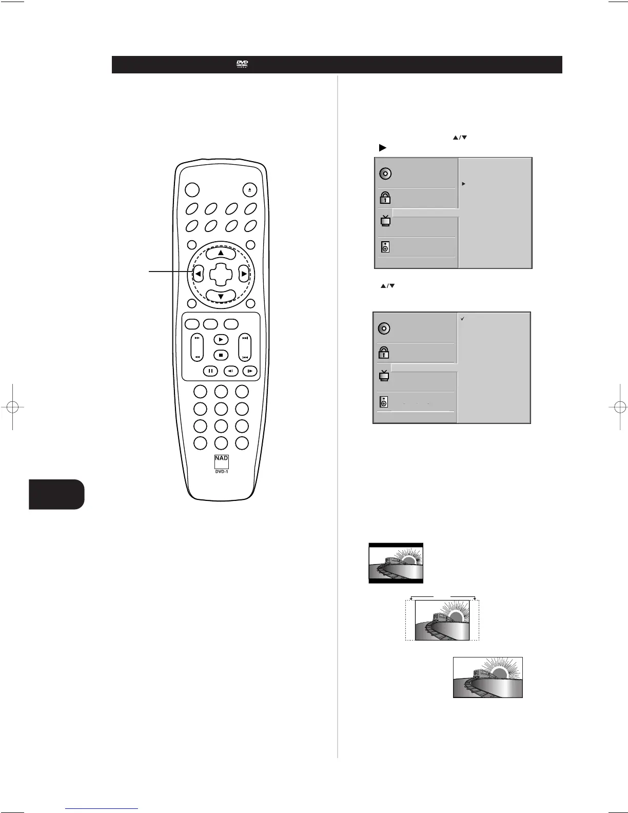 4 3 Panscan : Select when a conventional TV set is connected. The video