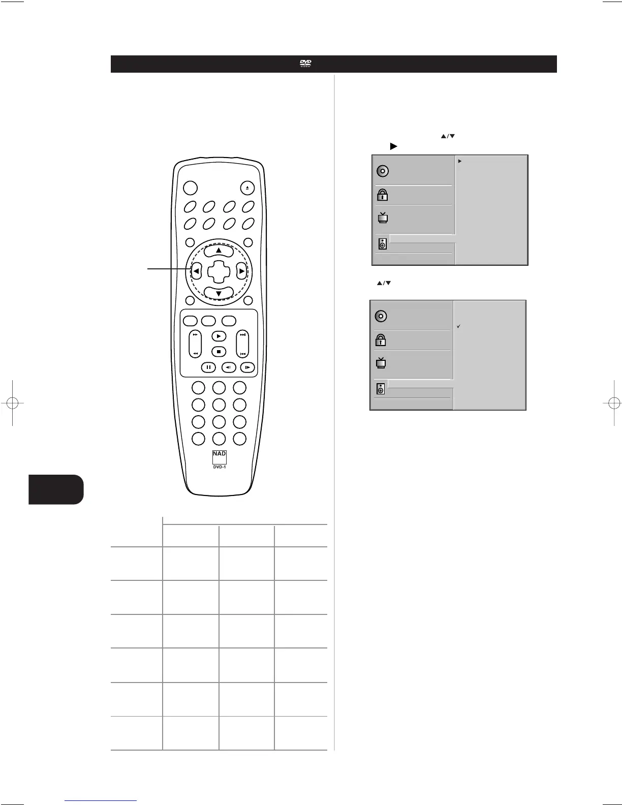 Each DVD disc has a variety of audio output options. Set the player’s