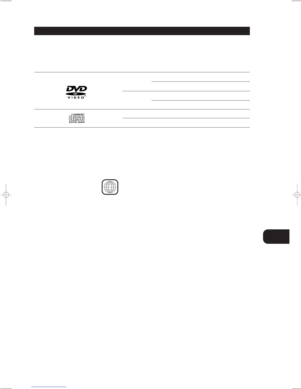 on a DVD disc. If the Region number described on the DVD disc does not correspond to the Region number of this DVD player, this DVD player cannot