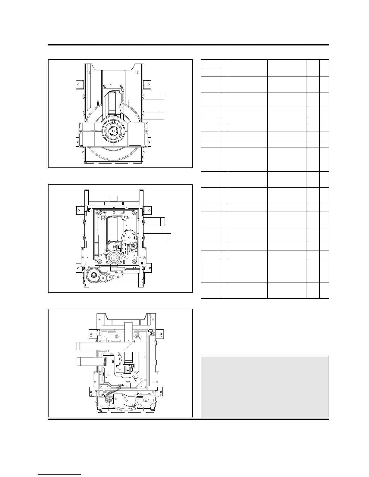 NAD T531B - Deck Mechanism Parts Locations; Top View; Top View(Without Tray Disc); Bottom View