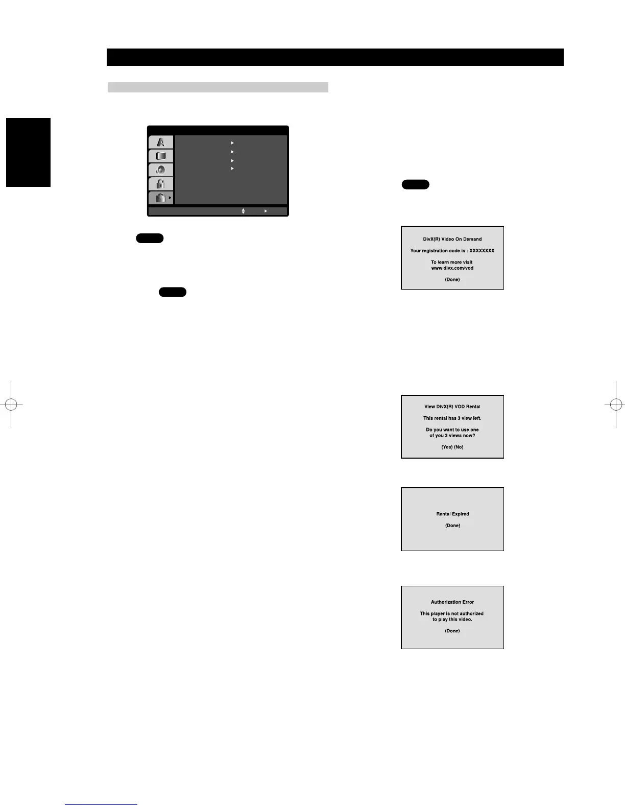 The PBC, Auto Play, B.L.E. and DivX(R) VOD settings can be changed.