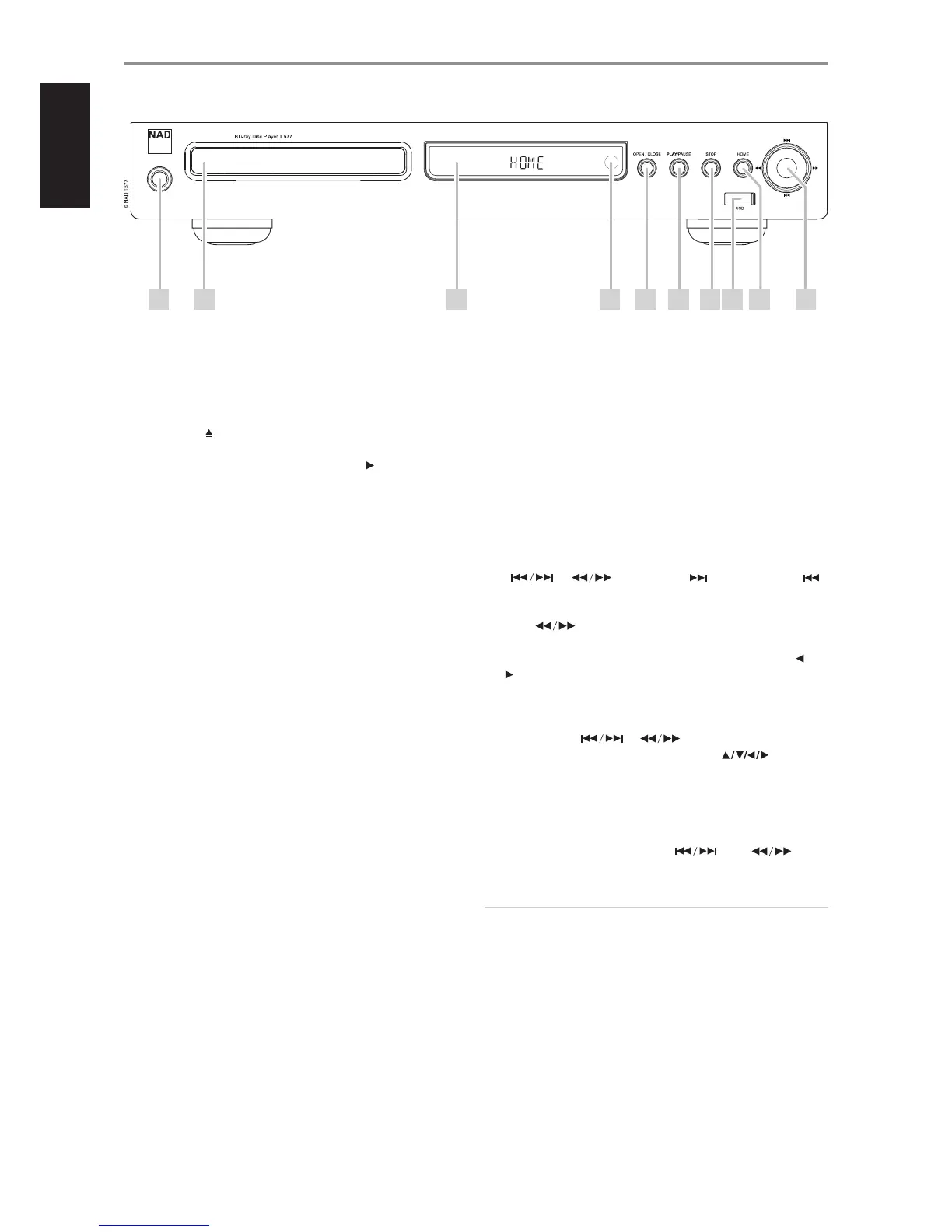 7 STOP: Except for BD playback, pressing this button will stop and at