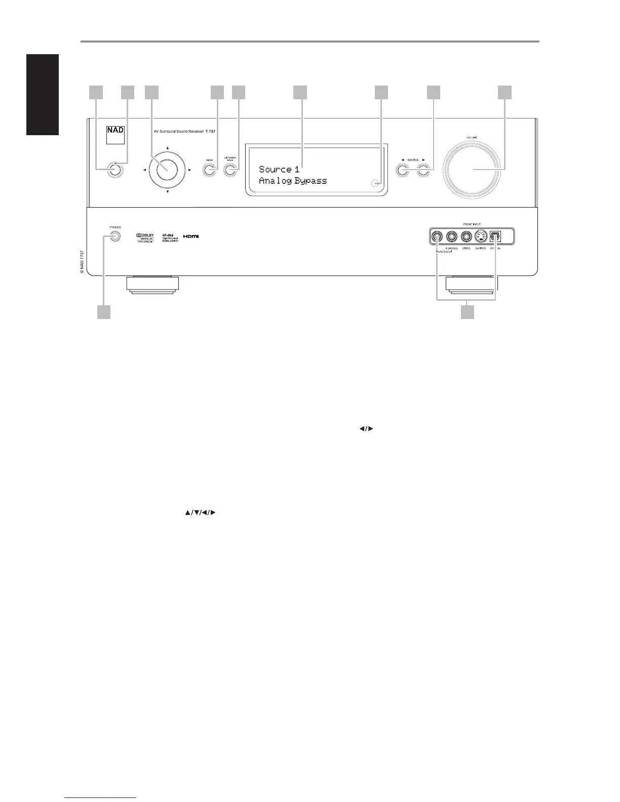 7 REMOTE SENSOR: Point the AVR 3 remote control at the remote sensor