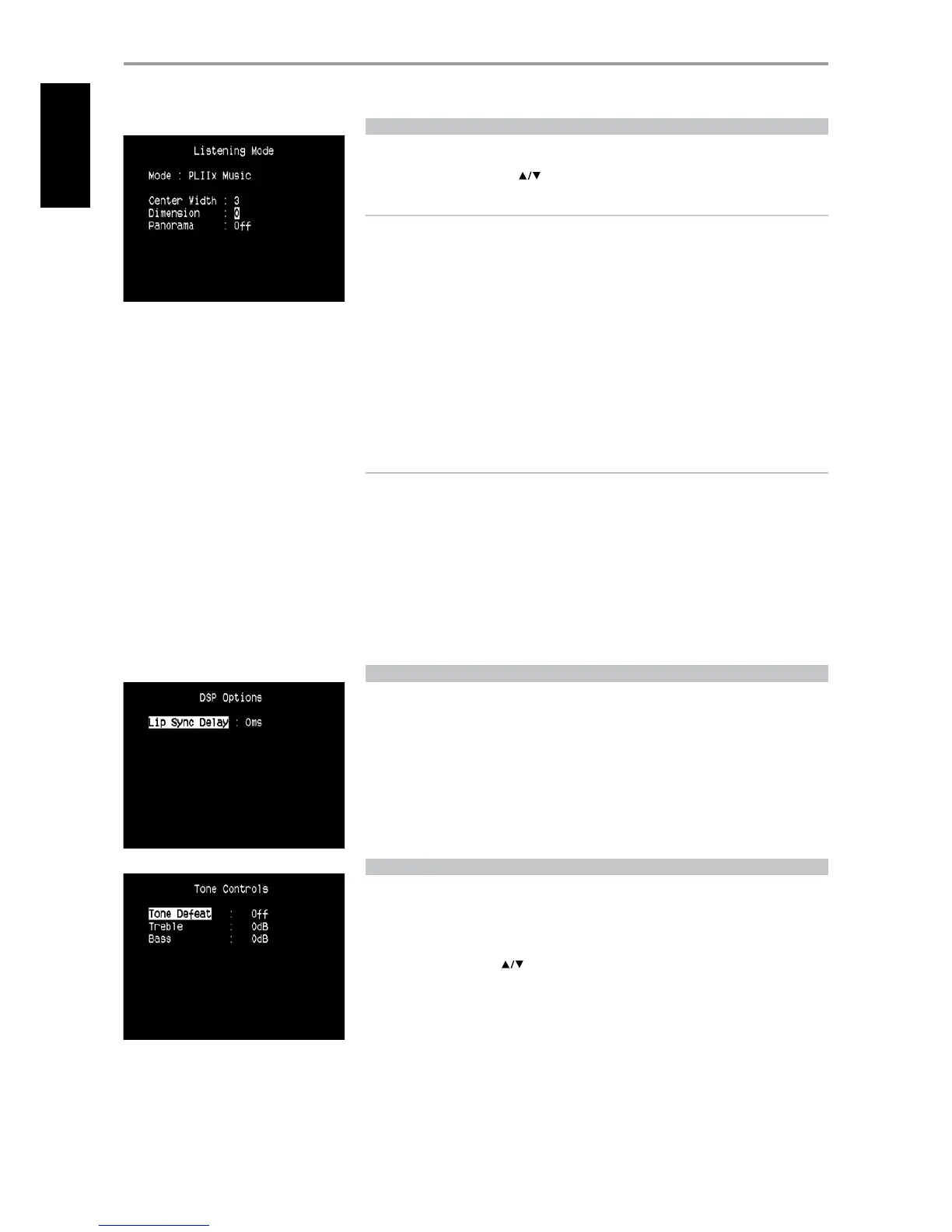 also save a modied Listening Mode for easy recall by saving it to a Preset (See “A/V PRESETS” below