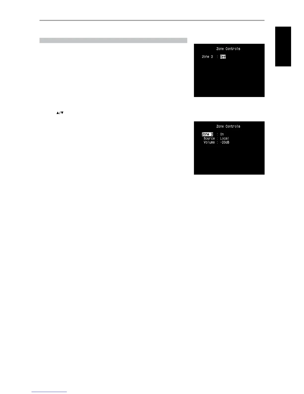 If Zone 2 is set to “O”, it is deactivated or powered o.