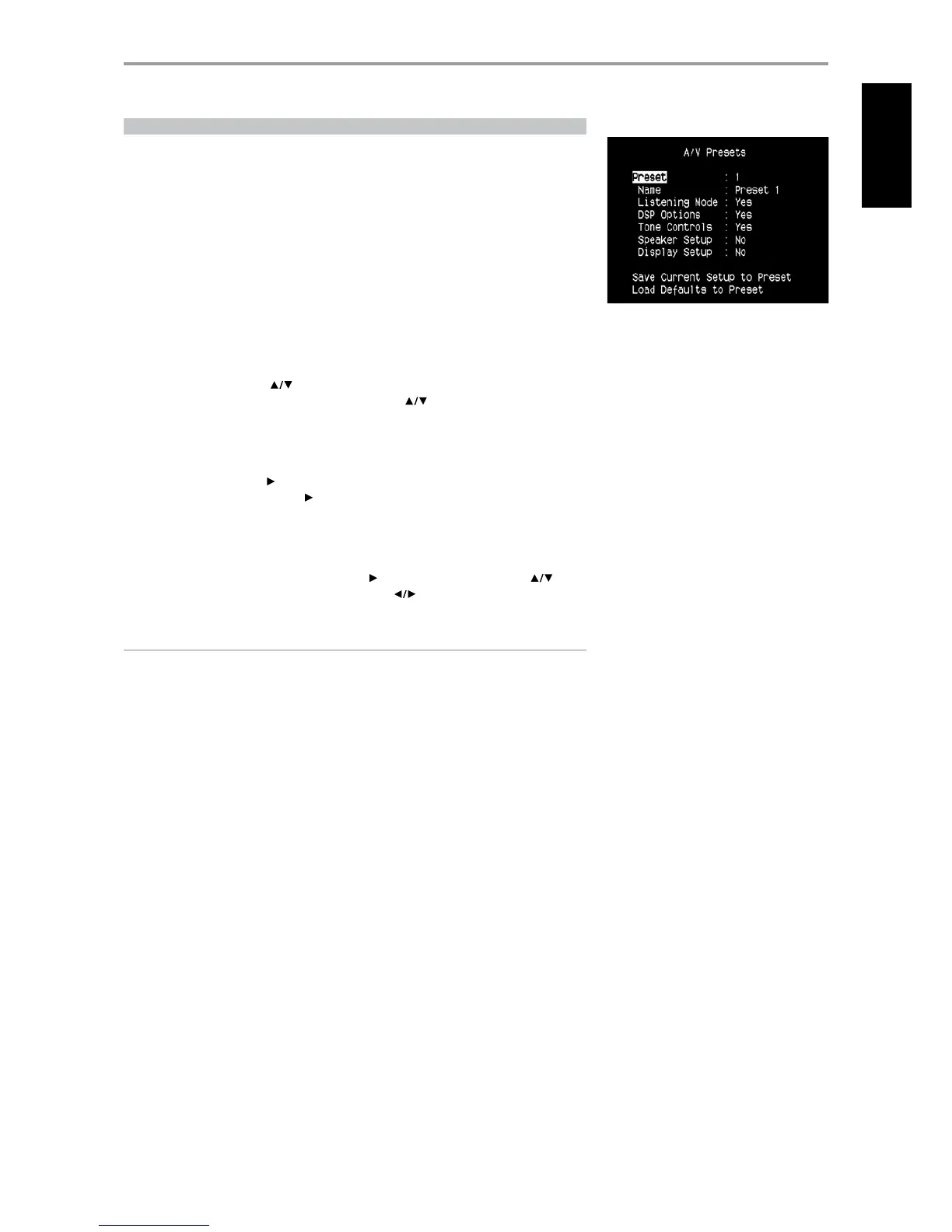 aspect of your audio-video playback, and recall them with a single key-press. The parameters “Listening