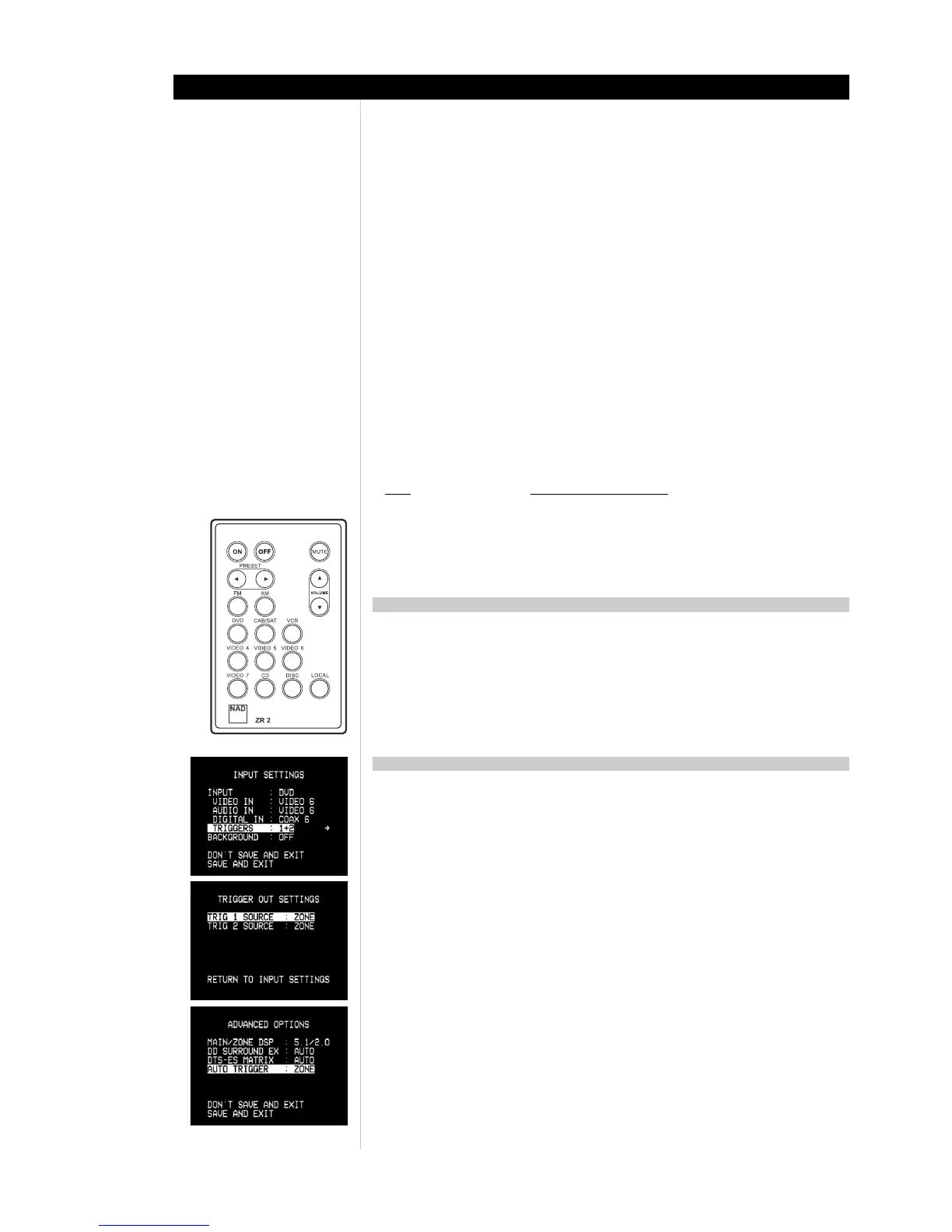 selected Trigger 1 or 2 can be assigned to the main room, zone, or both locations. See ADVANCED OPTIONS