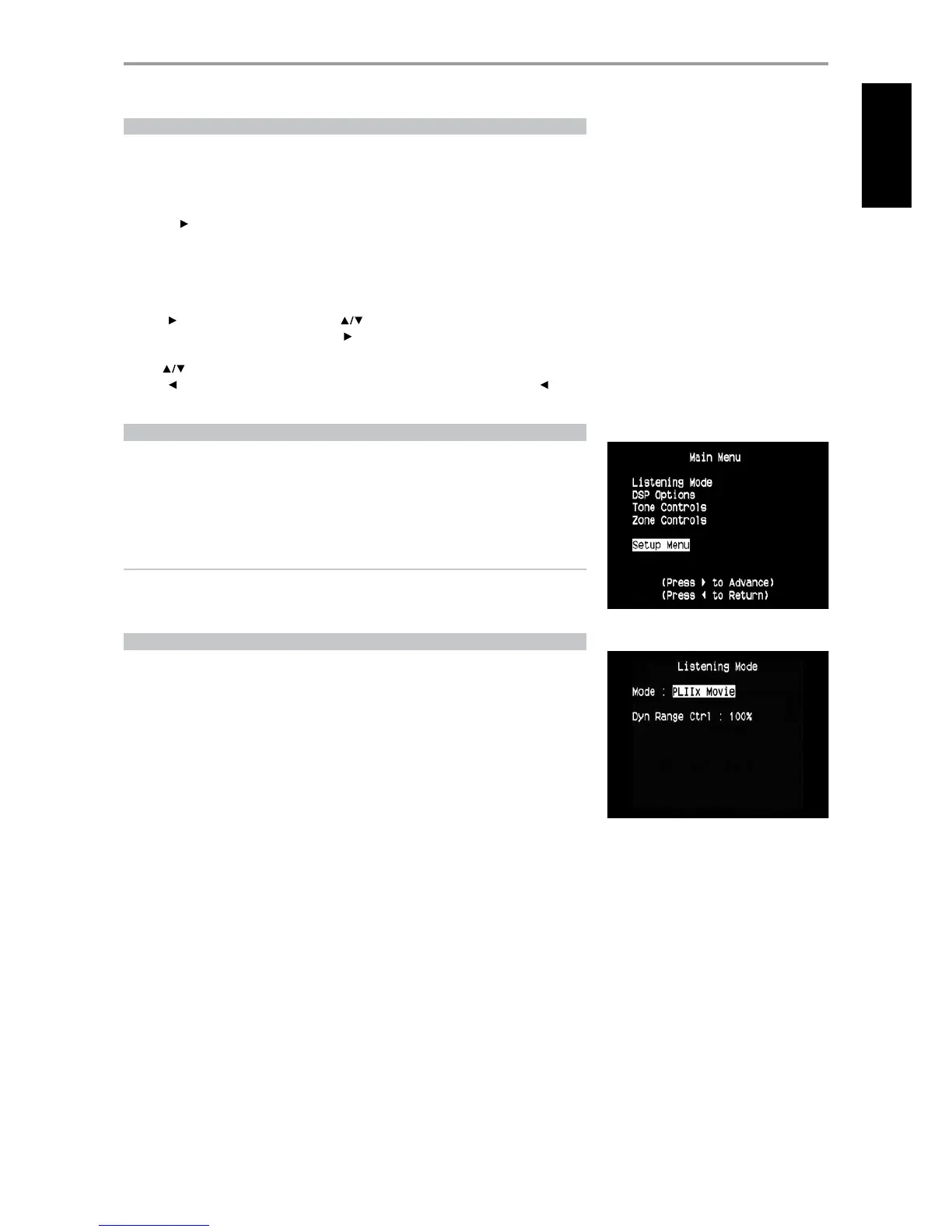The individual congurations set forth at ‘Listening Mode,’ ‘DSP Options’ and ‘Tone Controls’ are